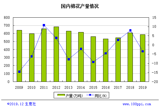 國家統計局數據:2019年11月我國紗產量為261.4萬噸,同比減少2.1%。1-11月紗產量為2678.9萬噸,累計減少0.5%。 14%
